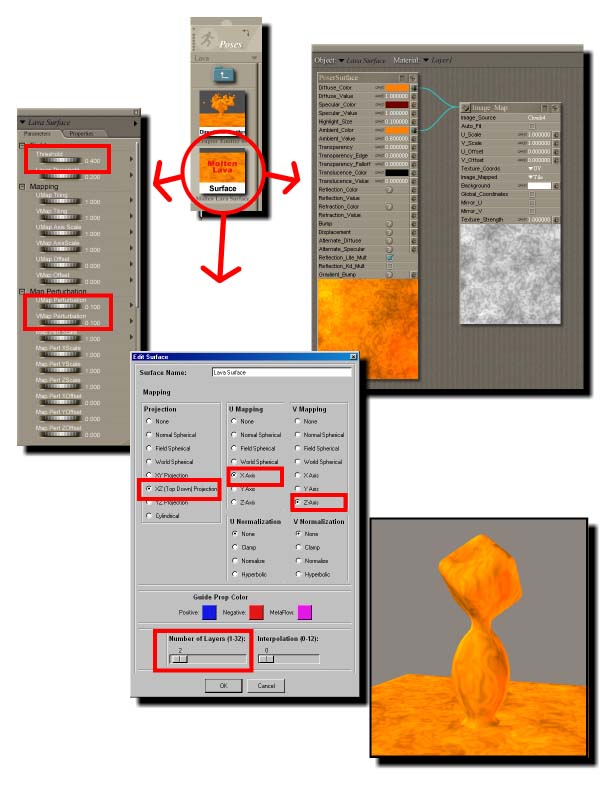 scene, the Create Surface button in the Surfaces panel of the plug-in