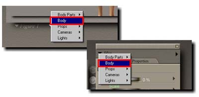 Window or (Poser 5) in the props pull-down menu list of the parameters