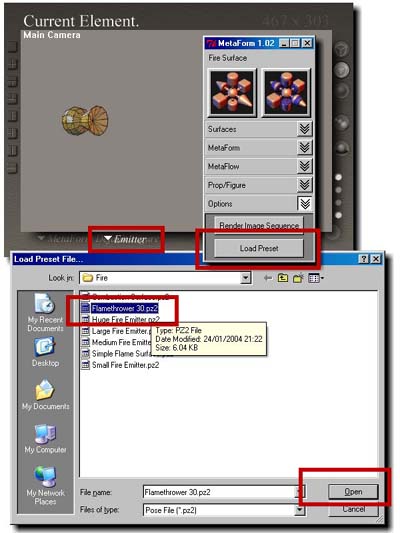 Also, when using animated Emitter Presets (such as the flamethrower animation)